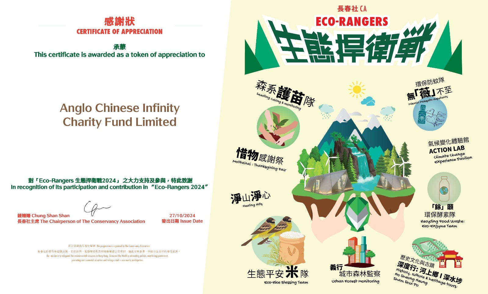 Support and participate in the annual large-scale fundraising event "Eco-Rangers 2024" organized by The Conservancy Association. Raise funds for The Conservancy Association‘s environmental education, cultural initiatives, and tree conservation efforts, while also contributing to the community. Protect the ecology through daily living and achieve the goals of a sustainable environment and an inclusive community.
