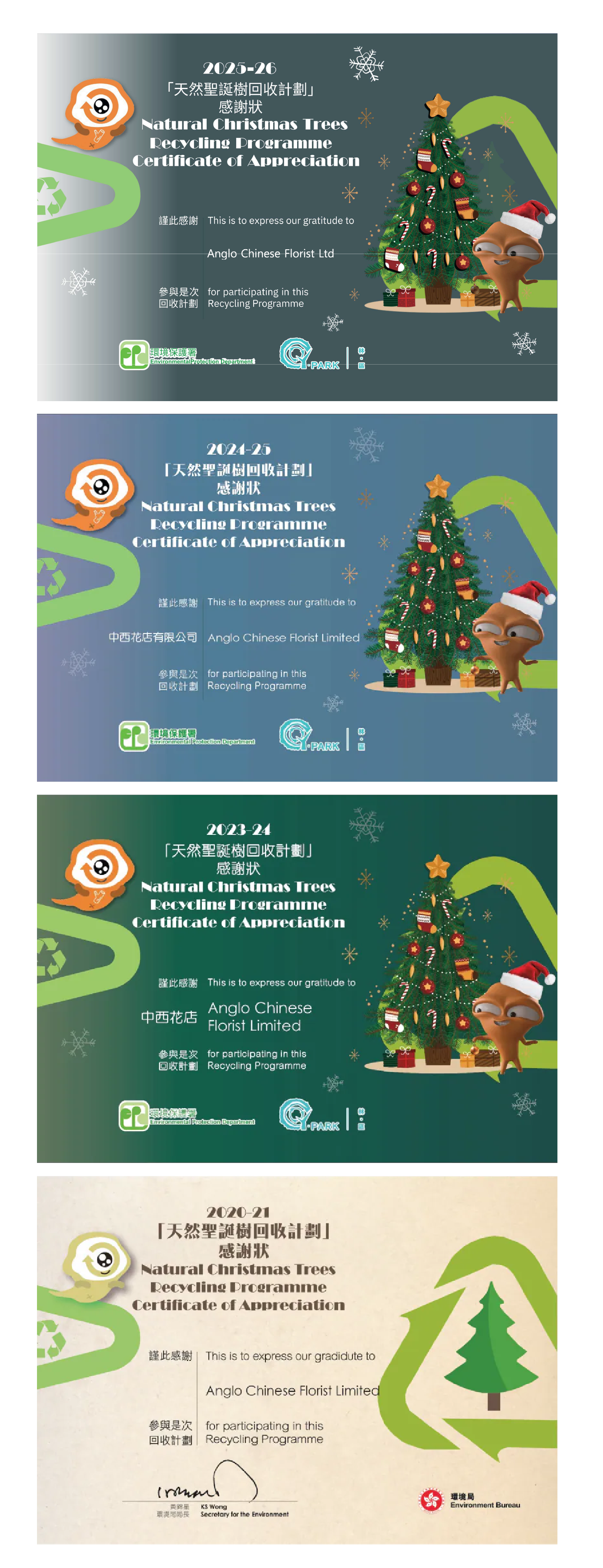We continued to support Natural Christmas Trees Recycling Programme since 2020.