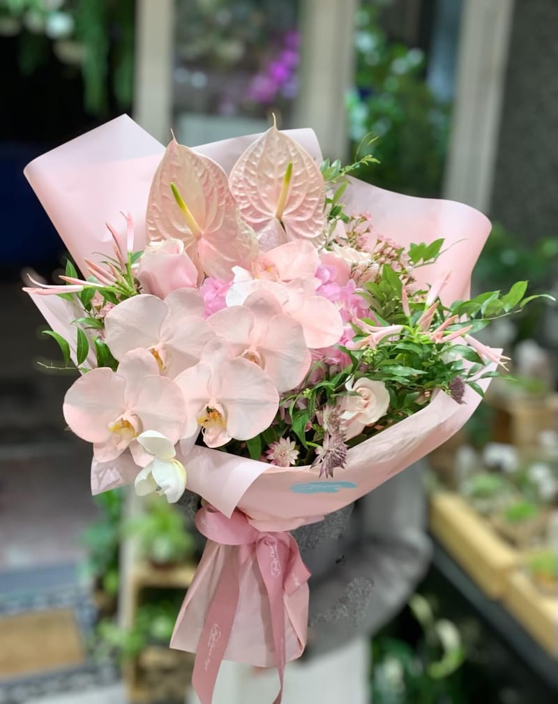 Hydrangea, Rose, Orchid (Dyed) with seasonal flowers