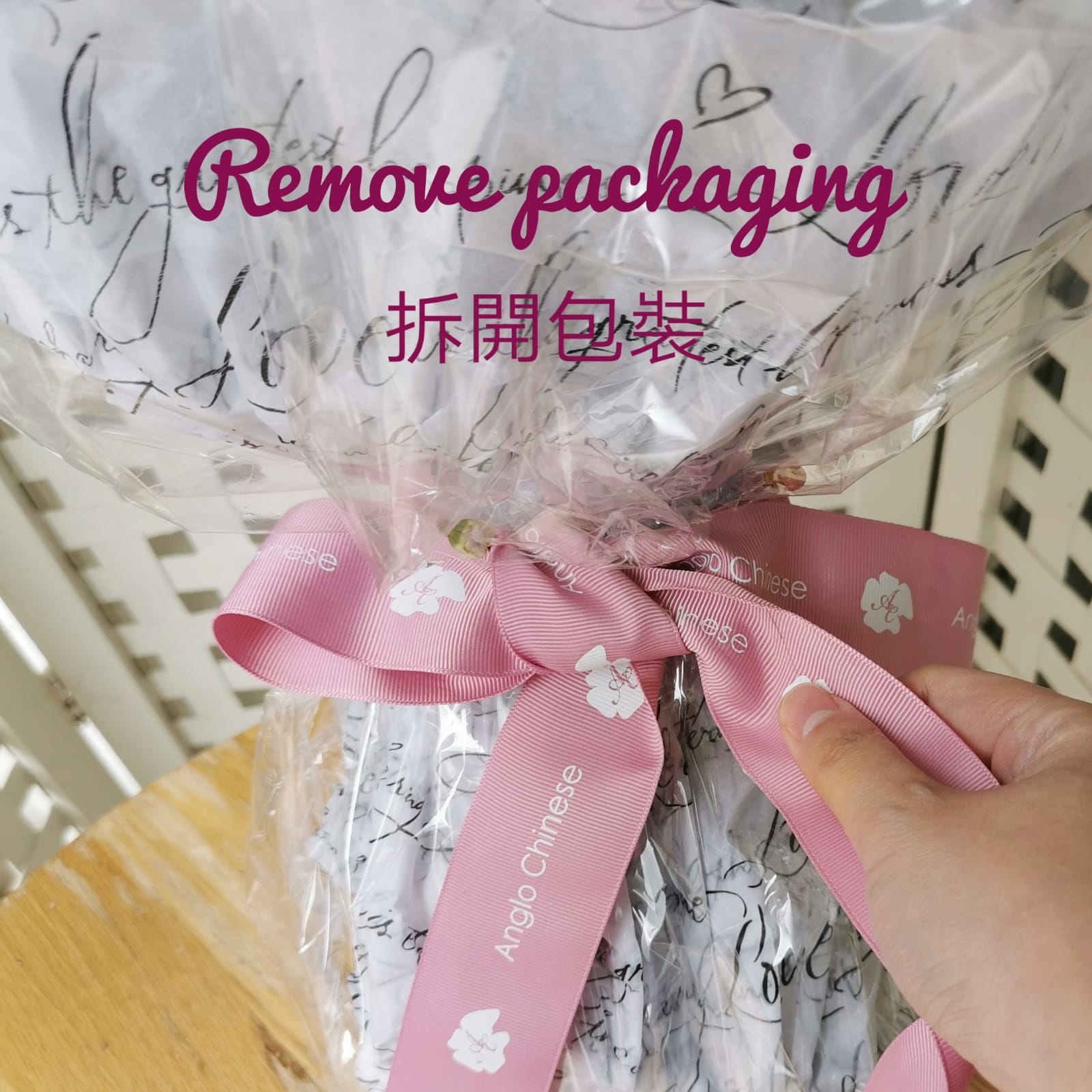 If you need to keep the flowers inside packaging for some time – we have some water at the base of bouquets. Just make sure the bouquet is kept with water. If unsure, better add more water! Add some water from the top center of bouquet, some flowers like hydrangeas drink up water quicker than others!